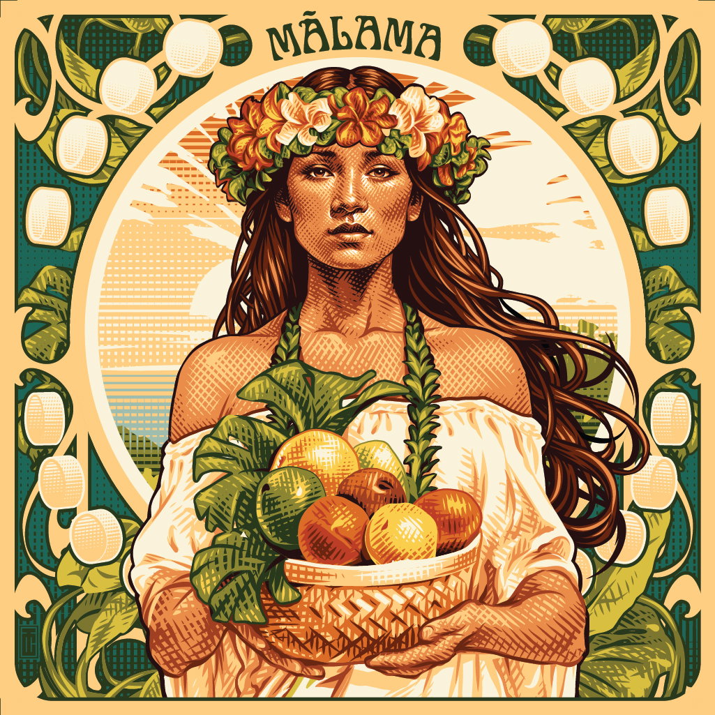 I was born on the island of Oʻahu but moved away when I was young. To heal some of my diasporic wounds, I earned a degree in Hawaiian Studies to better understand my people and my culture. One thing that was clear in my studies was the importance of mālama. In the Hawaiian language mālama has a nuanced meaning - to take care of, preserve, protect, save. It is often used in reference to ka ʻāina, or the land. In Hawaiian culture, everything and everyone throughout time are connected - tied to the earth. Our duty to all those that came before and all that will come after is to care for the land, care for each other, and care for our bodies. This was the inspiration for this feature’s illustration. For as an artist, it is my hope to perpetuate these ideals by serving as both conduit and representation.